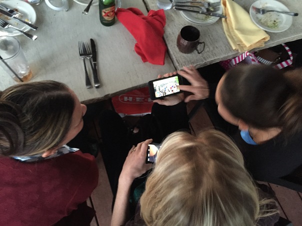 While they were waiting for their food to arrive, the women took turns showing off their cell phones.