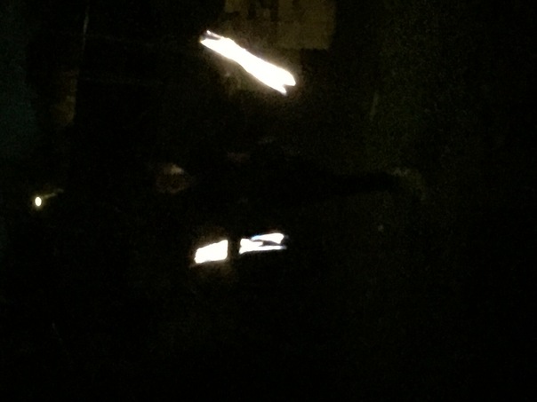 It is a very dark night with only one light to light up the photograph.