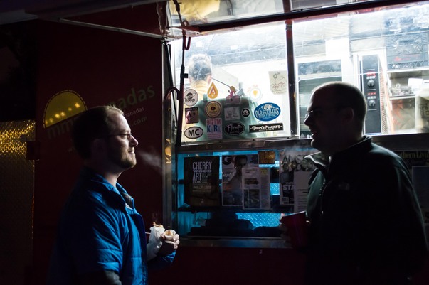 I especially enjoyed my neighbors Kristen and Cody parking their Mmmpanadas truck in my backyard; I'm told they sold quite a few. The murals Adrienne painted for the respective groups were big hits and our caricature artist stayed around drawing people until after 4 in the morning.