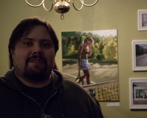 The artist proudly displayed his paintings and photos during the gallery showing at the festival.
