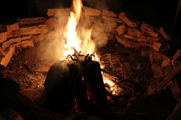 wood fire at night