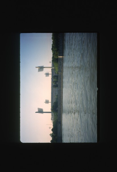 its a capture which was done by a person who are in the ship or boat it addresses towards the buildings |