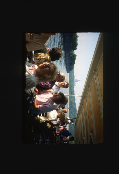 the lake view is seen and the sky is blue and look fantastic and man are standing |