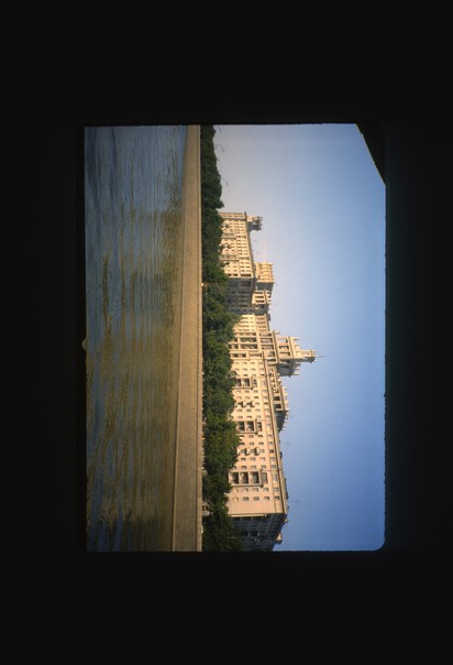 a big building is there and a big lake is in front of it. |