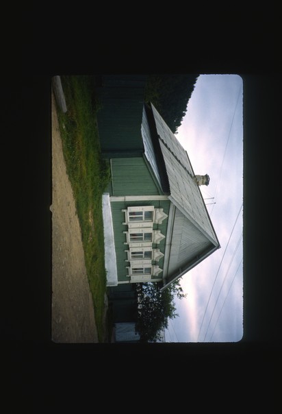 this is a wooden building graces are in front of house |