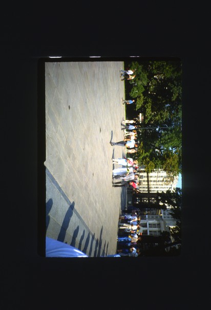 A GROUP OF PEOPLE ATTENDING A PARADE AND SOME PEOPLE ARE WATCHING THE SAME |