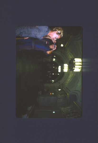 A man is taking a picture of a woman inside of a dark tunnel. |