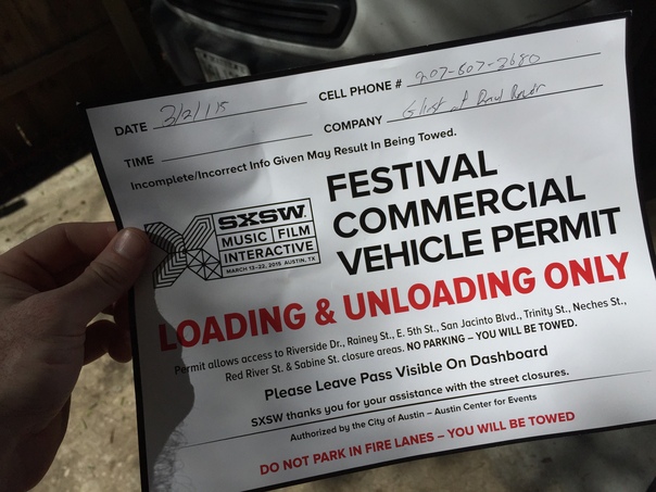 SXSW commercial vehicle permit for a music film and gaming convention.