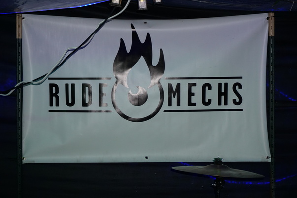 a sign of a musical group with a symbol of drum under it