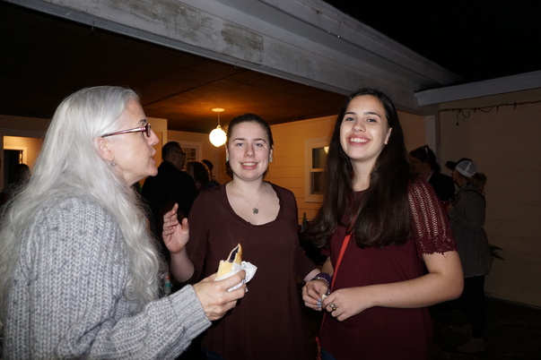 Elderly women chatting with young women in a party.