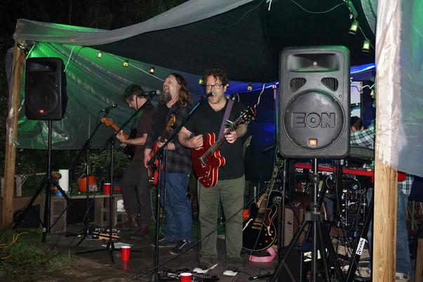 Having a nice evening out watching a buddy's band, while drinking a few drinks.