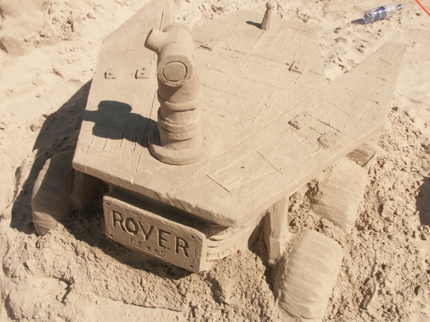 This is a sand-sculpture of a solar powered 6 wheel robotic exploration vehicle.