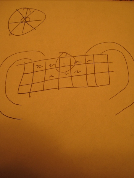 it has little round- circle,straight lines,gigantic curved lines side of rectangle