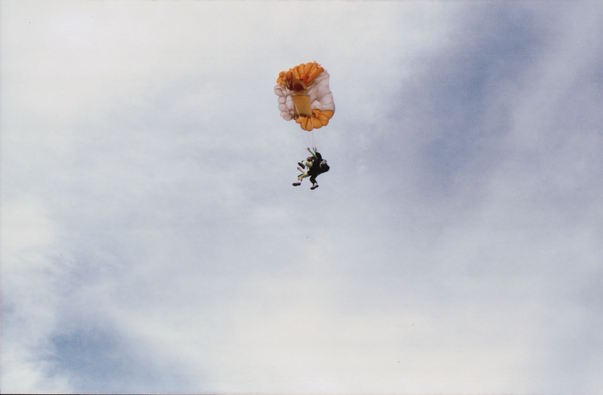 Although we did tandem jumps, Dayna's primary chute malfunctioned; some of the cables got crossed. Evidently they were plummeting to the ground pretty quickly and her jumpmaster was just about to cut the cords away and throw the reserve when the wires finally untangled.