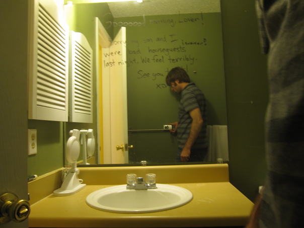 Just a bunch of photos I took around my house one afternoon. Besides the delightful message that Caroline left on my mirror, I also had the pleasure of coming across a full snail orgy. Super NSFW!