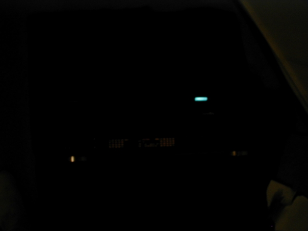 In a full darkness the small light from a electronic machine is shows like little stars in a dark sky.
