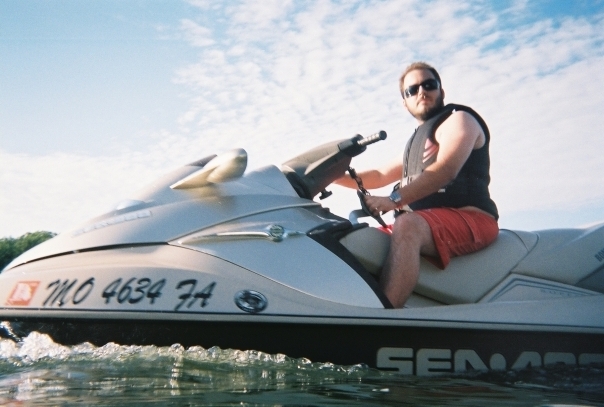 After Dave and I had taken a cruise through the Lake of the Ozarks Party Cove on the jet ski (a daring adventure no doubt), we came across someone's single-use waterproof camera floating atop the surface.