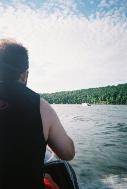 After Dave and I had taken a cruise through the Lake of the Ozarks Party Cove on the jet ski (a daring adventure no doubt), we came across someone's single-use waterproof camera floating atop the surface.