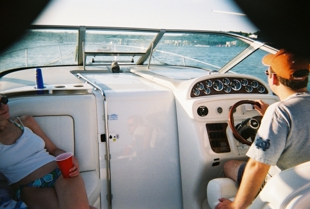 After Dave and I had taken a cruise through the Lake of the Ozarks Party Cove on the jet ski (a daring adventure no doubt), we came across someone's single-use waterproof camera floating atop the surface.