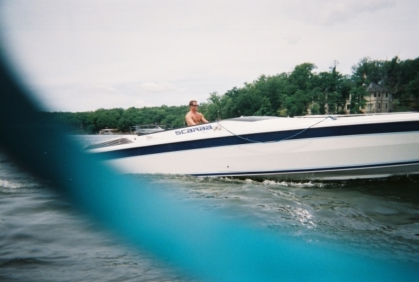 After Dave and I had taken a cruise through the Lake of the Ozarks Party Cove on the jet ski (a daring adventure no doubt), we came across someone's single-use waterproof camera floating atop the surface.