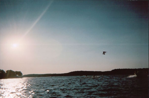 After Dave and I had taken a cruise through the Lake of the Ozarks Party Cove on the jet ski (a daring adventure no doubt), we came across someone's single-use waterproof camera floating atop the surface.