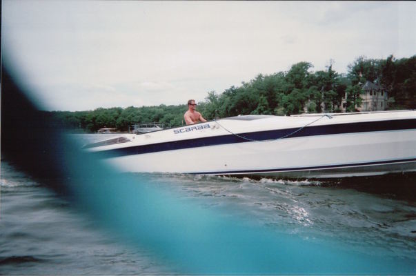 After Dave and I had taken a cruise through the Lake of the Ozarks Party Cove on the jet ski (a daring adventure no doubt), we came across someone's single-use waterproof camera floating atop the surface.