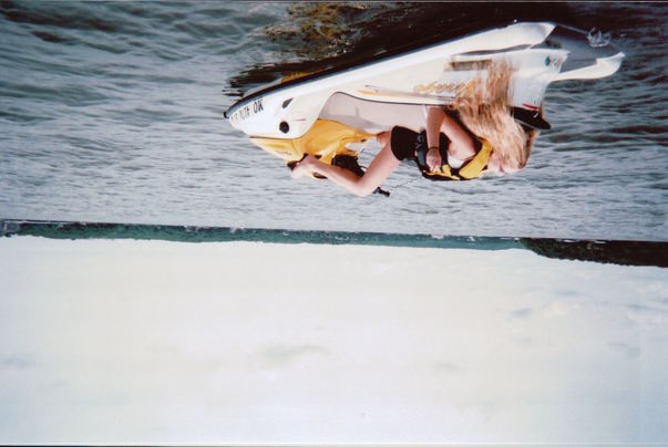After Dave and I had taken a cruise through the Lake of the Ozarks Party Cove on the jet ski (a daring adventure no doubt), we came across someone's single-use waterproof camera floating atop the surface.
