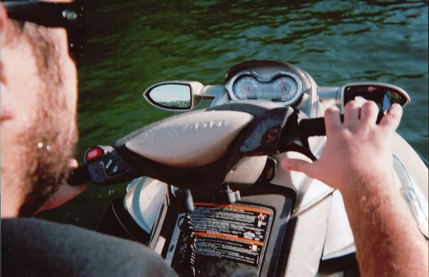 After Dave and I had taken a cruise through the Lake of the Ozarks Party Cove on the jet ski (a daring adventure no doubt), we came across someone's single-use waterproof camera floating atop the surface.