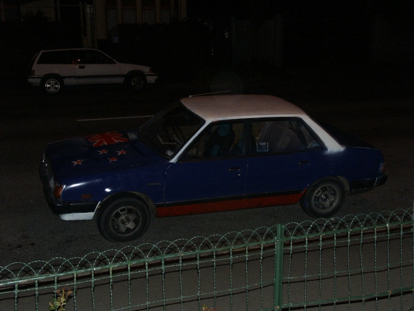 Tisa and I bought this car for $400.00 NZ (about $220 USD at the time). I spent a few dollars and several hours painting the New Zealand flag on the hood of it.