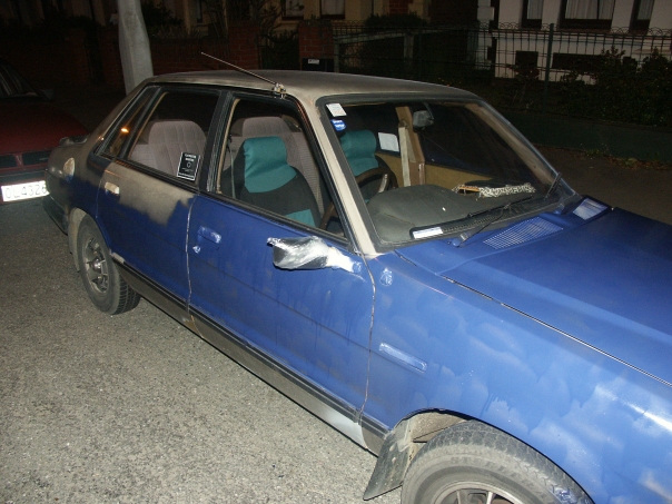 Tisa and I bought this car for $400.00 NZ (about $220 USD at the time). I spent a few dollars and several hours painting the New Zealand flag on the hood of it.