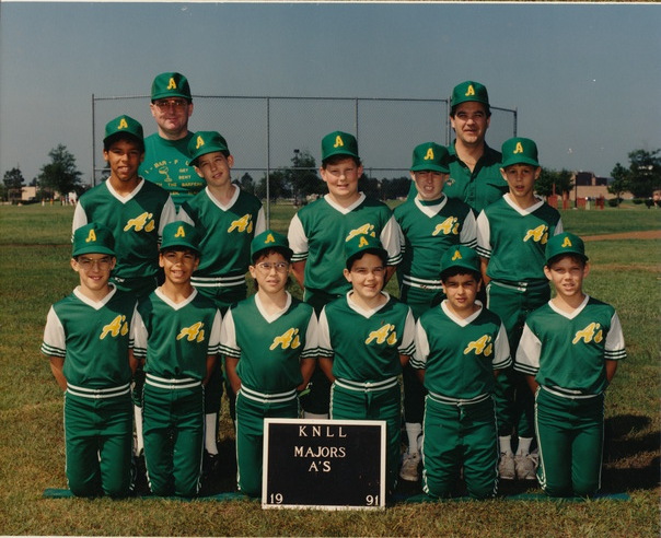The A's, bedecked in their green and gold uniforms, pose for the Little League team picture.