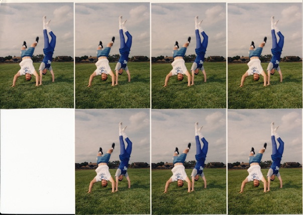 There is two boys doing a hand stand in a field.