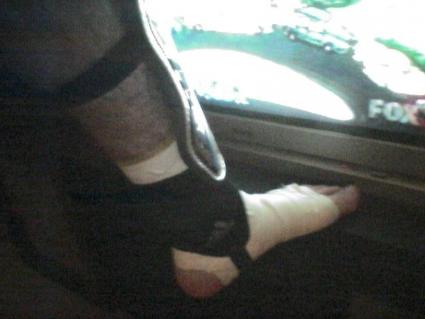 the man leg is broken and so sad it will be pain in his leg
