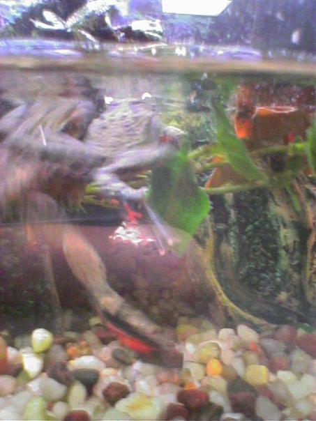 Out of focus image of an aquarium containing unidentifiable animal and plant life.