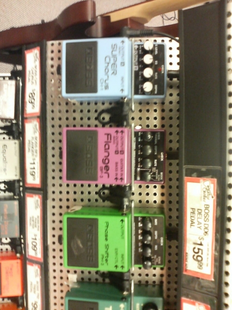 Electronic music devices that cost over 100 dollars are on display for sale.