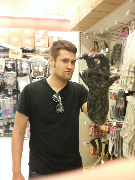This picture look like a guy holding a fake Halloween glove.
