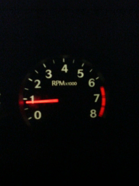 An engine RPM gauge lit up, the red needle is just below the 1, meaning less than 1000 RPM's.