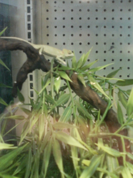 A green lizard in a pointy leaved tree is looking for something to eat.