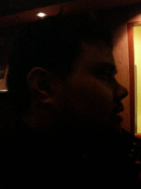The side of a man's face is barely visible in a mostly black picture.