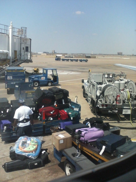 All of the heavy pieces of luggage were placed outside of the plane to be screened.
