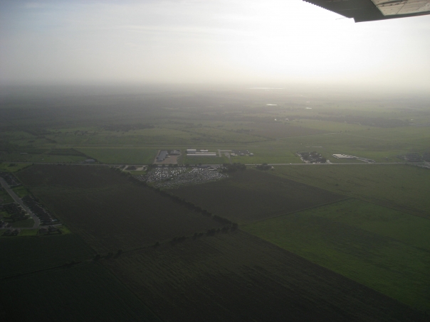 A view from the plane looking over a field from the sky
