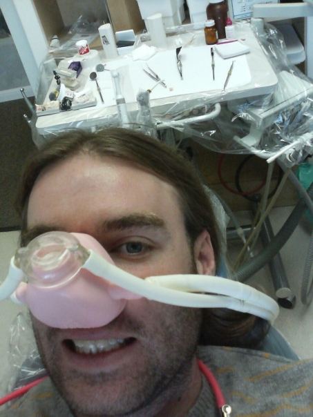 A patient on the chair about to start his medical inspection.
