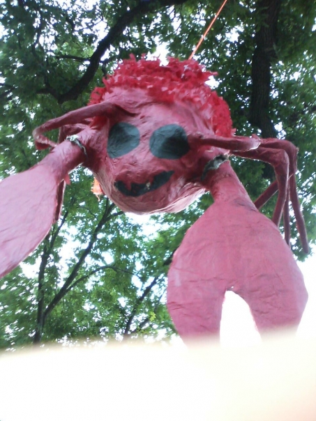 the large red pinata looks like a crab with two claws