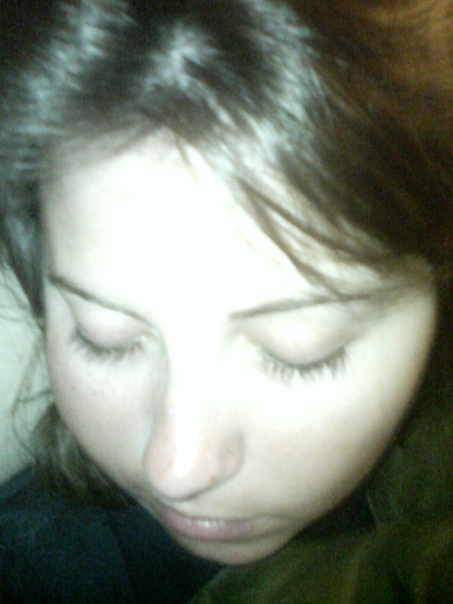 This young woman is looking down with her eyes closed, possibly deep in thought.
