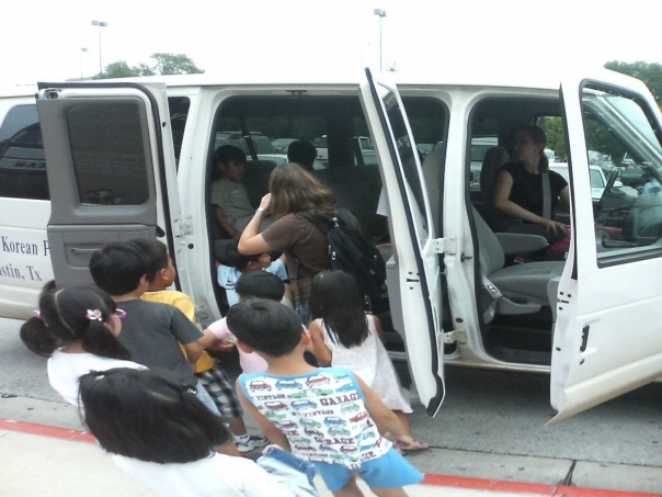 all the kids are going in a car