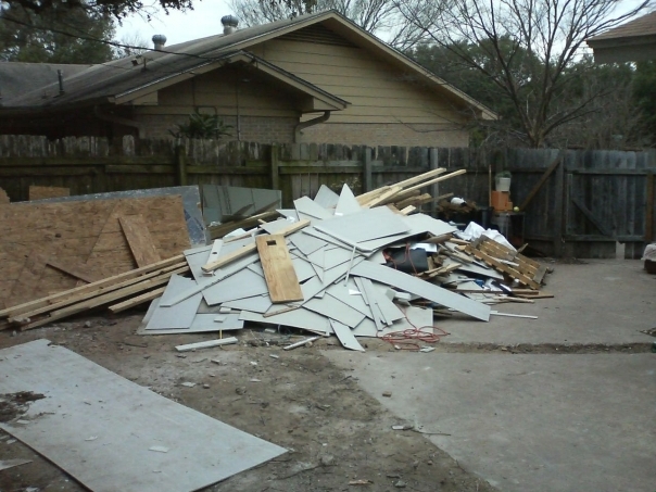 A broken pieces of wooden behind the house