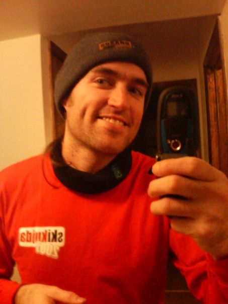 A man wearing a red sweater and a gray hat smiles for a selfie.