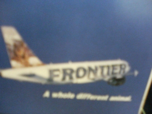 the flight name is frontier and it is flying in the sky