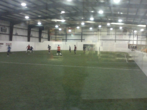 This is an indoor stadium. Most of the players are playing foot ball here. Down lighting arrangements are very effective.