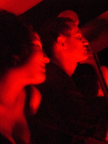 She smiles to herself thinking of the baby she has inside her; he looks stoicly out of the window.